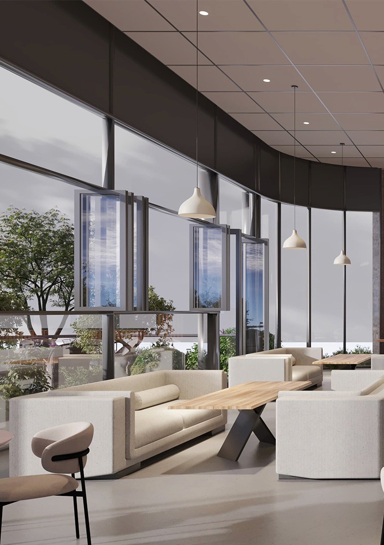 Multifunctional spaces on the ground floor include luxurious conference rooms, dedicated offices and a full gymnasium, complemented by a café-style atrium and other on-site amenities that support daily operations.
